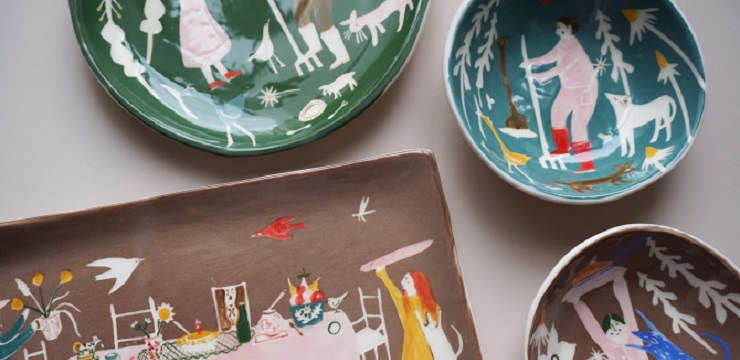Remember when I wrote about Polly Fern’s illustrated tiles last winter? Well, I spotted a beautiful new series of works by Polly that just made my day again. Colorful ceramic bowls with cute & quirky little figures, handcrafted & illustrated by Polly and currently available in her shop!